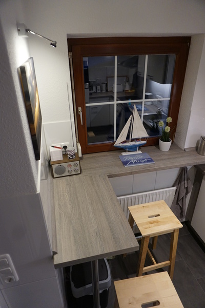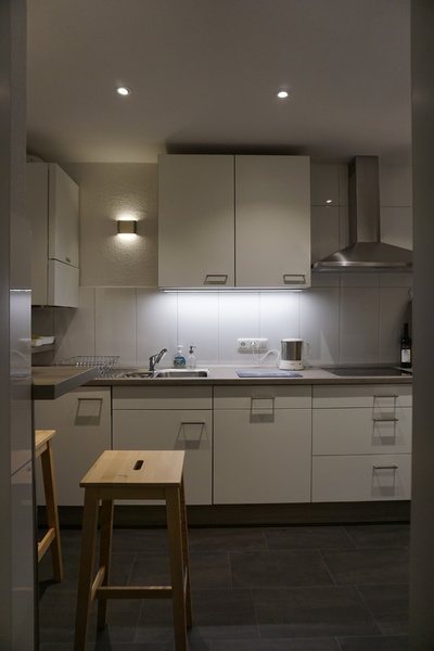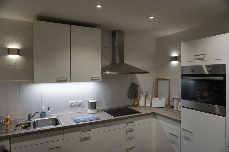 In der Küche ist neben der üblichen Austattung mit Herd, Backofen und Kühlschrank eine Spülmaschine und Waschmaschine vorhanden.
