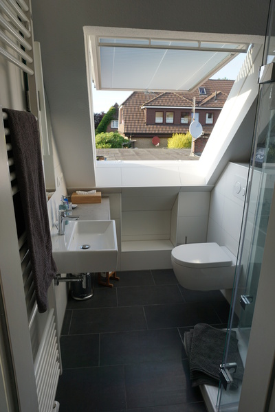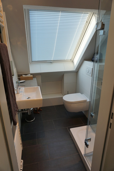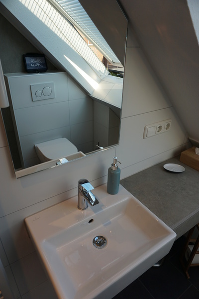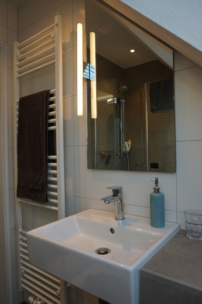 Im Obergeschoss befinden sich das Schlafzimmer und Badezimmer mit Dusche.